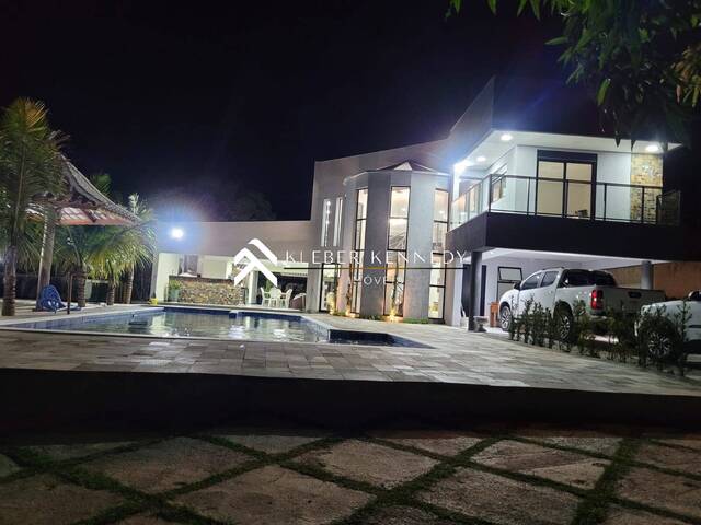 Belíssima chácara em condomínio fechado  Portaria 24h Terreno:1000m2 Casa totalmente de laje 4 dormitórios sendo 4 suítes, sala e cozinha americana ampla,1 banheiro social, casa toda avarandada, área gourmet com banheiro, piscina será entregue pronta com vinil e cheia, pomar com diversas frutas. Valor: R$ 750.000,00